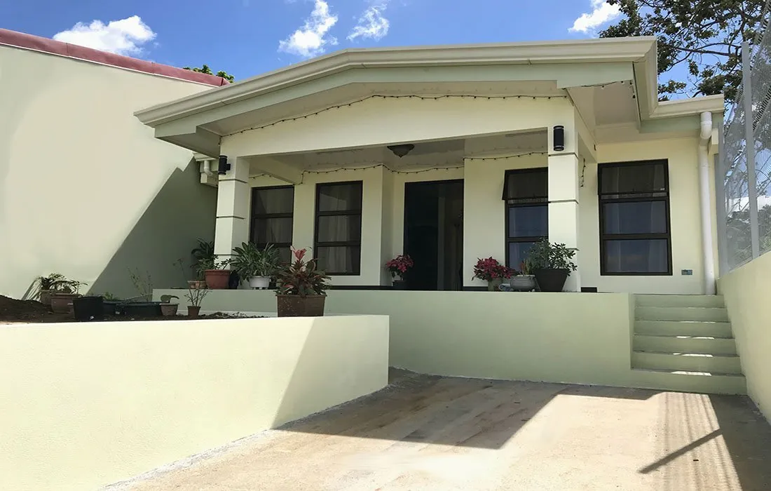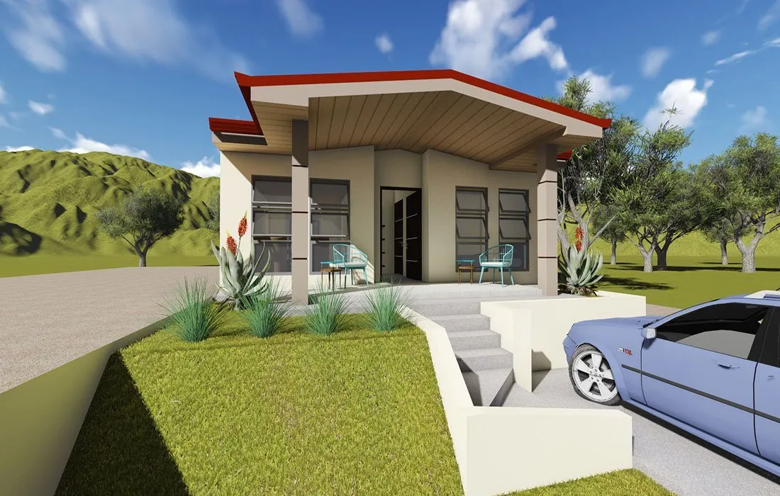 Diseño y construcción de la casa de habitación que incluyó: sala, comedor, cocina, dormitorio principal, baño principal, walking closet, dormitorio, baño, lavandería, tendido, terraza, aceras perimetrales, gradas de acceso, parqueo, rampa de acceso y tapias perimetrales.